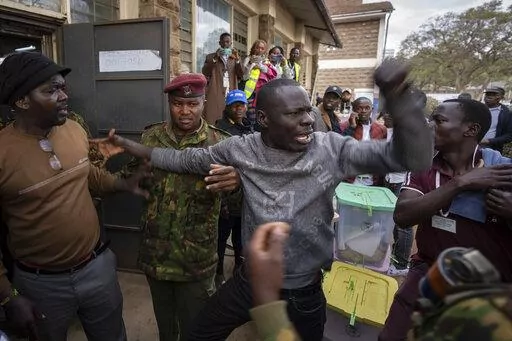 Amnesty International Kenya and other groups in a statement urged Kenyans to consider all results as provisional until the electoral commission announces the official results to reduce the risks of violence or claims of rigging. But tensions in some places were already high. In the Nairobi neighborhood of Mathare, an angry crowd formed after seals on a few ballot boxes at a tallying center were found broken.