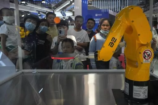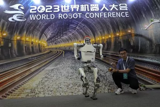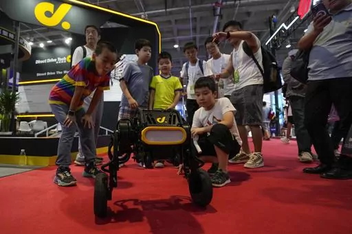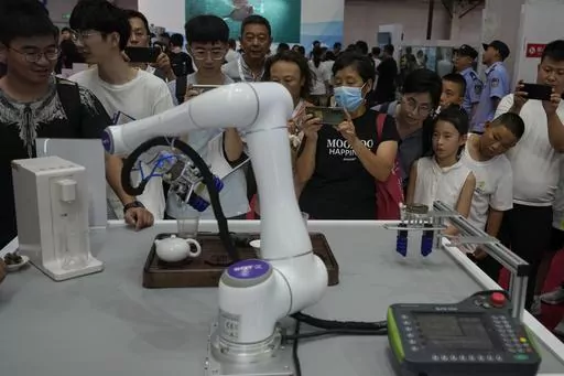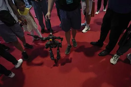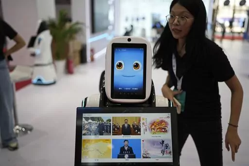 BEIJING (AP) — Winking, grimacing or nodding their heads, robots mimicked the expressions of visitors at a robot expo in Beijing.
