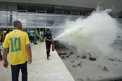 Justice Minister Flávio Dino told reporters that police have begun tracking those who paid for the buses that transported protesters to the capital. Speaking Monday at a news conference, he said rioters apparently intended for their displays to create a domino effect nationwide, and that they could be charged with a range of offenses, including organized crime, staging a coup and violent abolition of the democratic rule of law.