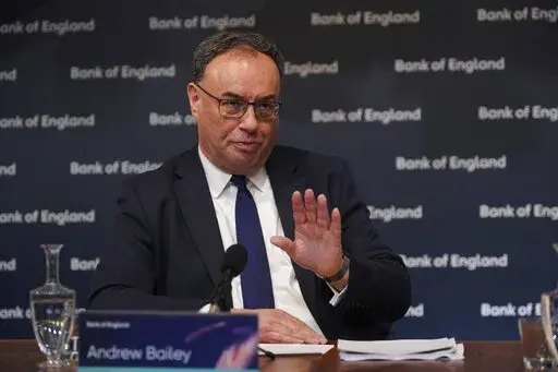 “We have done a lot on rates already … but it is too soon to declare victory just yet,” bank Gov. Andrew Bailey said at a news conference. “Inflationary pressures are still there … and we need to be absolutely sure that we really are turning the corner on inflation.”