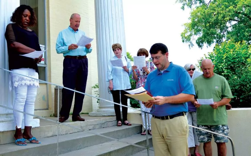 Led by pastor Brian Rushing of First Baptist Church of Newton, residents sang the Star-Spangled Banner, read scripture and took turns praying for different aspects of the community.