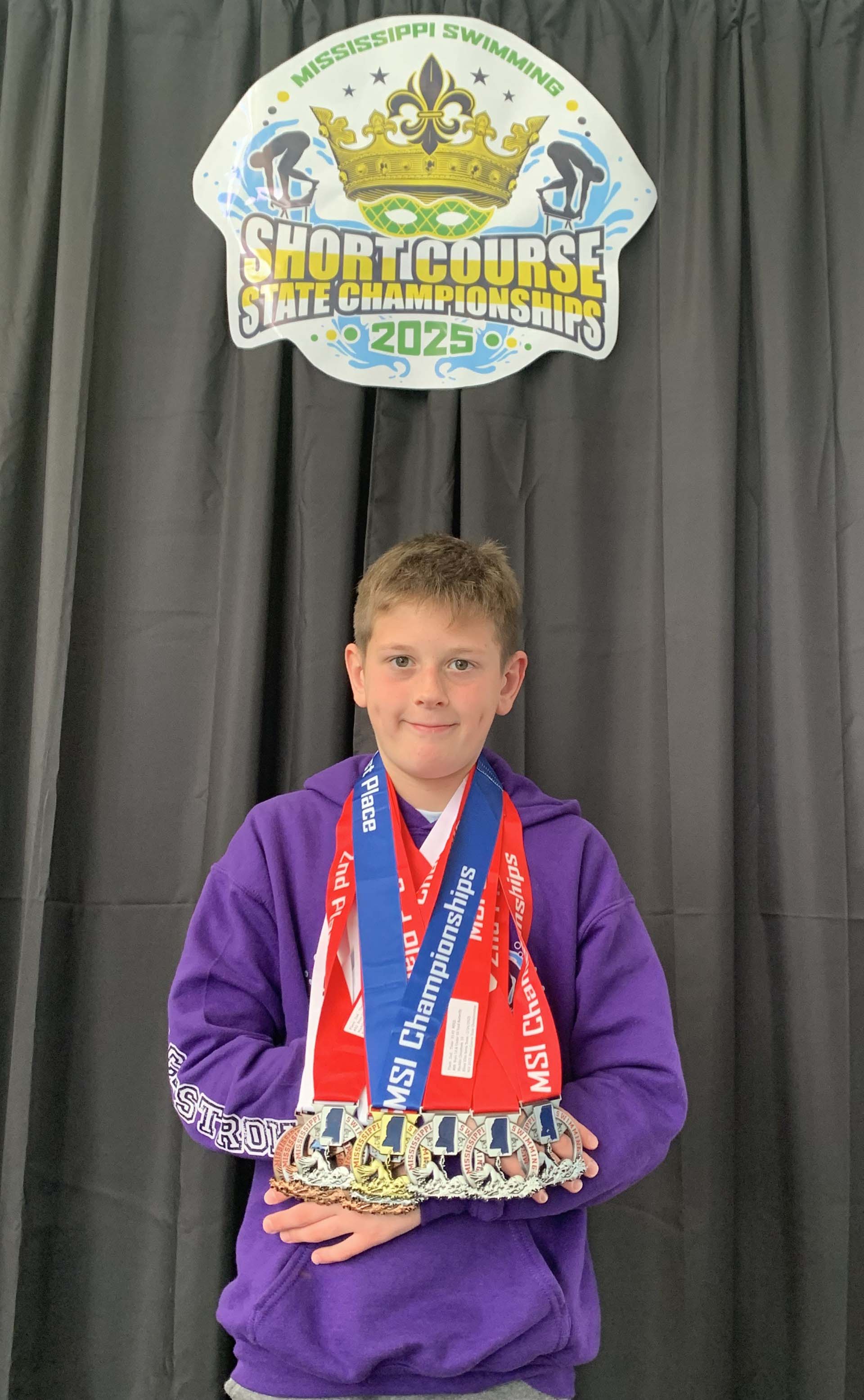 Swim a race, win a medal. Macklin Cheatham recently competed in the Mississippi Swimming Inc. Short Course State Championships held in Biloxi. Cheatham medaled in all 7 of his individual events as well as 2 relays in the 10&Under Boys category.