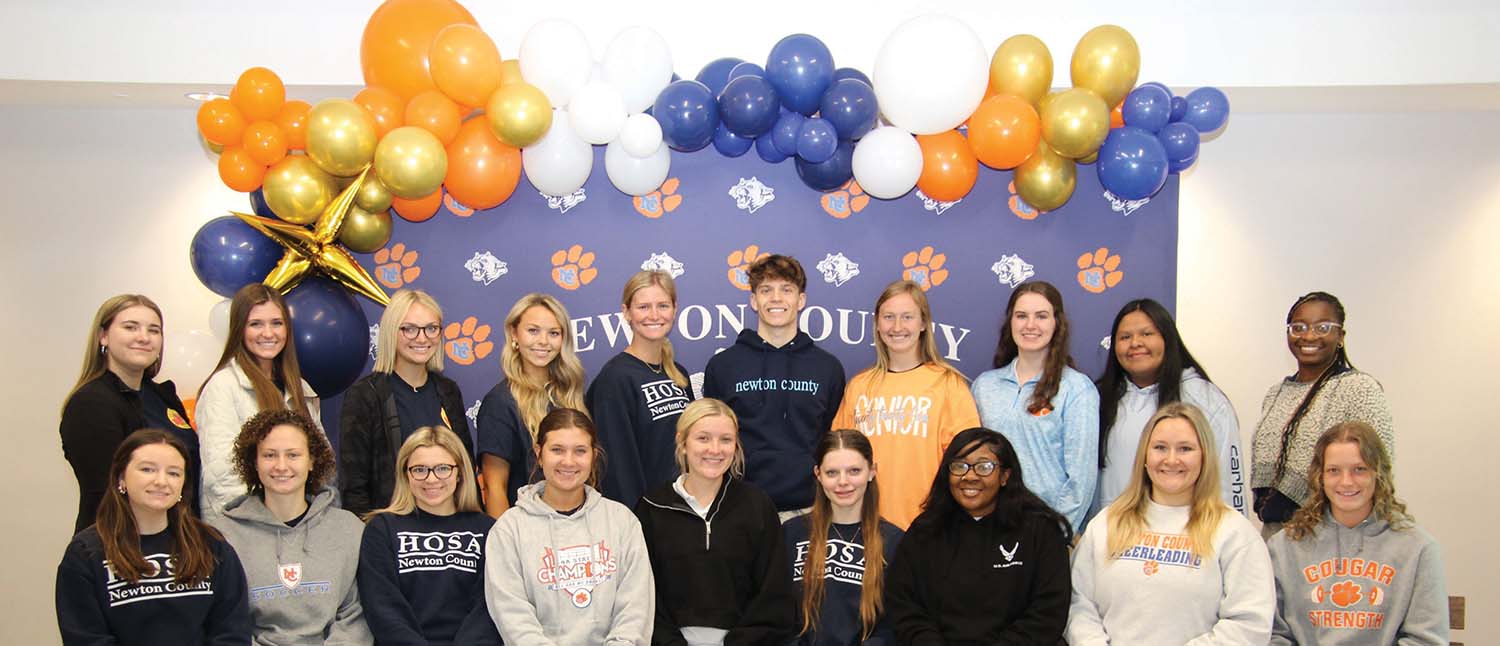 The Newton County Career and Technical Center Health Sciences Completers for the 2023-24 school year include front row from left: Aubrey Flint, Emma Claire Thornton, Maylee Lockley, Brelie Phillips, Brooklyn Boykin, Bryanna Gann, DyAsia Lampkin, and Aubrey Kate Hayes; back row from left: Morgan Chaney, Annalyse Russell, Lacie Posey, Mikala Townsend, Kaylee Avant, Levi Holliman, Grace Wade, Ashlee McCall, Claudia Allen, and Aneia Hodge. The NCCTC Health Sciences Instructor is Stephanie Cooley.