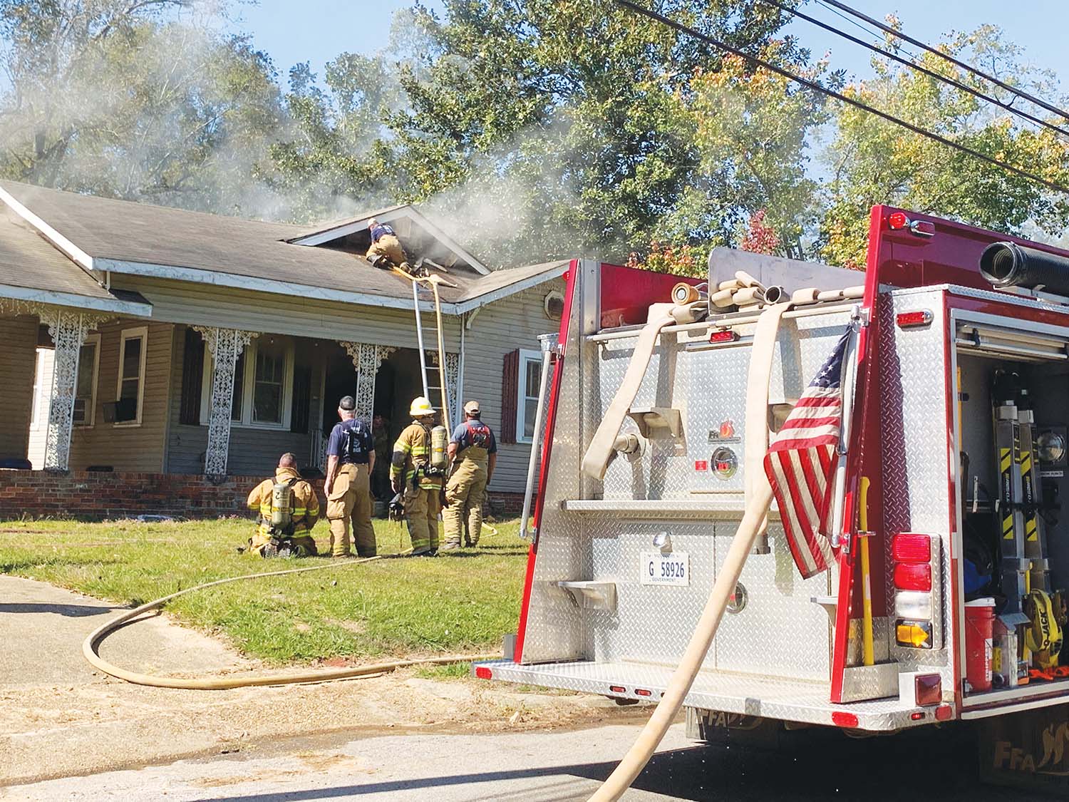 At 11:30 A.M. Tuesday, Oct. 22, the Newton Fire Department responded to a structure fire on Elm Street, where the home was fully engulfed in flames. Assisting Newton were fire departments from Decatur, Gibbstown, Union, Louin, and Key Field.