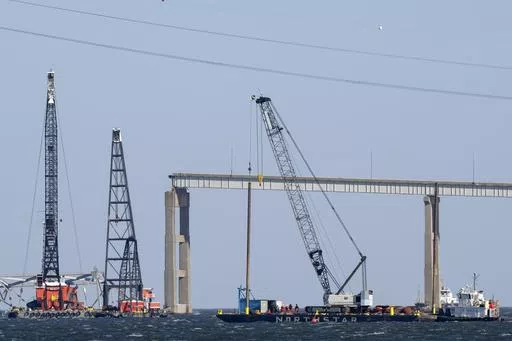 BALTIMORE (AP) — A crane that can lift 1,000 tons, described as one of the largest on the Eastern Seaboard, appeared near the site of a collapsed highway bridge in Baltimore as crews prepared Friday to begin clearing wreckage that has stymied the search for four workers missing and presumed dead and blocked ships from entering or leaving the city's vital port.