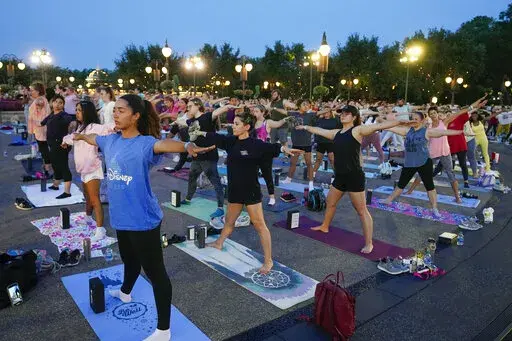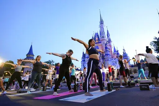 LAKE BUENA VISTA, Fla. (AP) — Disney workers traded their character costumes for yoga pants early Tuesday and planked, did the downward dog and folded into lotus poses at Walt Disney World in Florida to celebrate International Yoga Day.