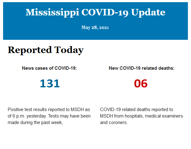 Listed below is the daily COVID-19 update for the state of Mississippi.