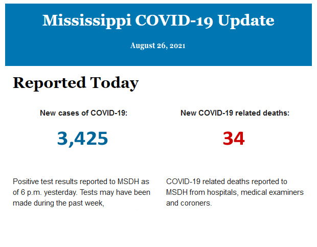 Listed below is the daily COVID-19 update for the state of Mississippi.