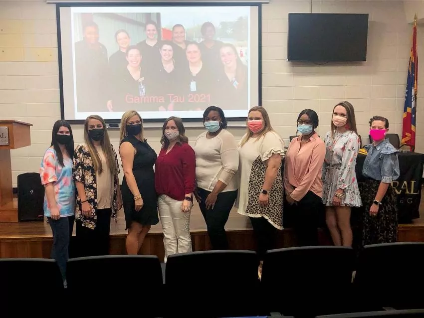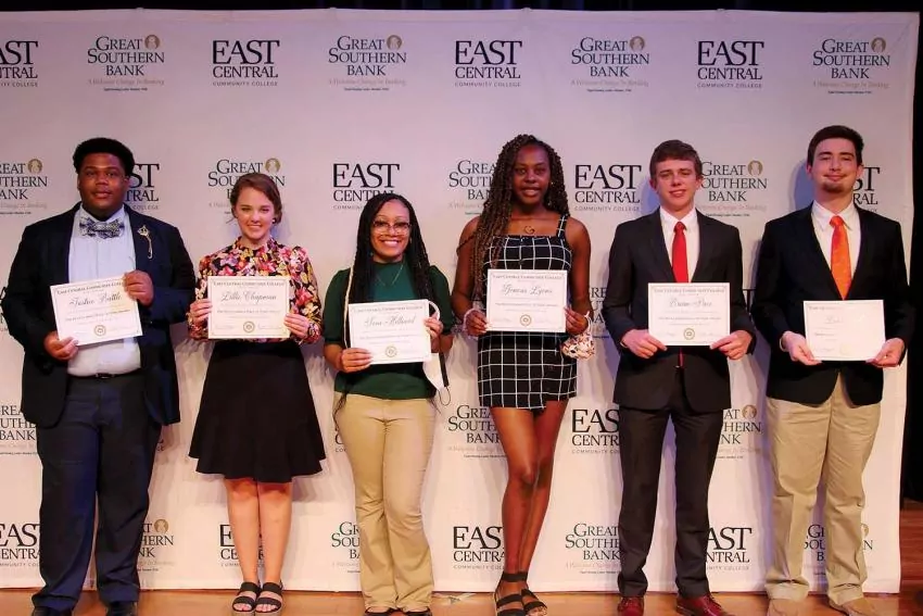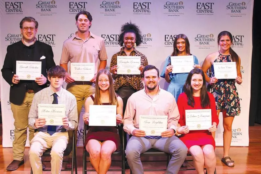 East Central Community College students receiving Faculty Memorial Awards during the 2021 Awards Ceremony held on the campus in Decatur and their respective hometowns included (front row, from left) Heston Harrison of Little Rock, Frank Edwin & Nena Holt Leatherwood Scholarship; Annabelle Miller of Lucedale, Dr. Shelby L.