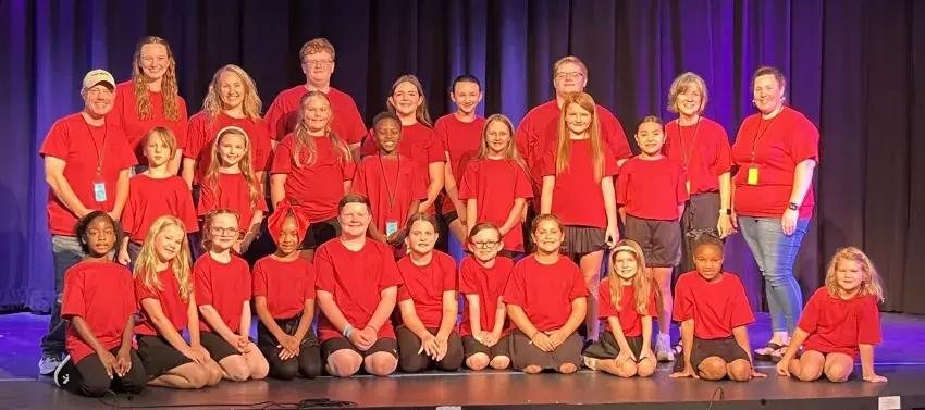 Newton Theater Company 2025 Theater Camp campers and staff: Row 1, from left, Gabby Gavin, Anna Claire Wilbourne, Lilah Kate Joiner, Chloe Martin, Trent Wright, Sadie Morgan, Camden Neese, Rebecca Lynn Godwin, Peyton Lovette, Ava Marie Woodson, Natalie McNeese. Row 2, from left, Jonathan Thorne, Gavin Giammolvo, Gabby Dendis, Melody McNeese, Kyler Douglas, Kensley Goodwin, Rynlee Jones, Astrid Morales, Julie Rownzee, and Andrea Morgan. Row 3, from left, Cara Brand, Rachel Brand, Sebastion Palmer, Matti Martin, Sadie Cooper, and Pierce Gilbert.
