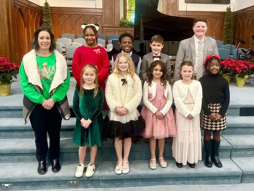 Pictured, front row, l-r, Mary Beth Thomas, Hadley Hillman, Anna Claire Wilbourne, Abigail Fierro, Stella Sudduth, and Gabby Gavin. Back row, l-r, Addie Moncrief, Kyler Douglas, John Michael Wellerman, and Trent Wright. Not pictured: Astid Morales.