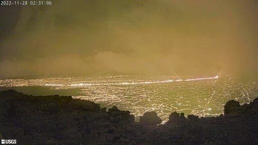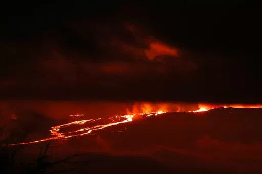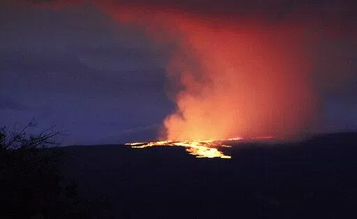 HONOLULU (AP) — Lava is shooting 100 feet to 200 feet (30 to 60 meters) into the air as Hawaii's Mauna Loa, the world's largest active volcano, erupts for the first time in nearly 40 years.