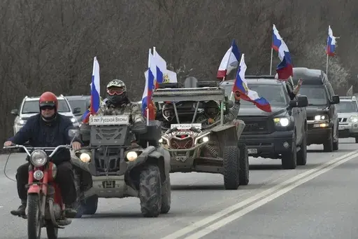 KYIV, Ukraine (AP) — Russian President Vladimir Putin traveled to Crimea to mark the ninth anniversary of the Black Sea peninsula’s annexation from Ukraine on Saturday, the day after the International Criminal Court issued an arrest warrant for the Russian leader accusing him of war crimes.