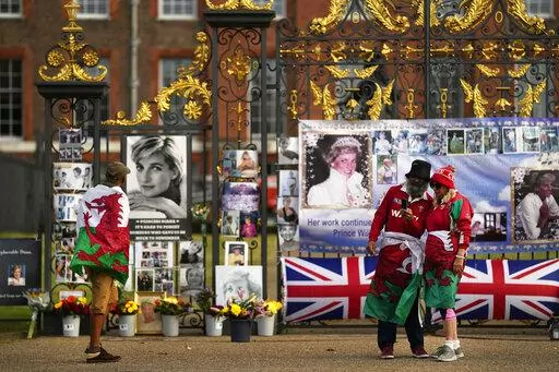 “We just come here, do the memorial and, you know, we just chat about things that she used to do, you know, to … let people know that we will never forget the princess, we will never forget what she’s done,’’ said Julie Cain, 59, who traveled 300 miles (480 kilometers) from Newcastle in northern England. “We just want her legacy kept, like, going as long as possible.”