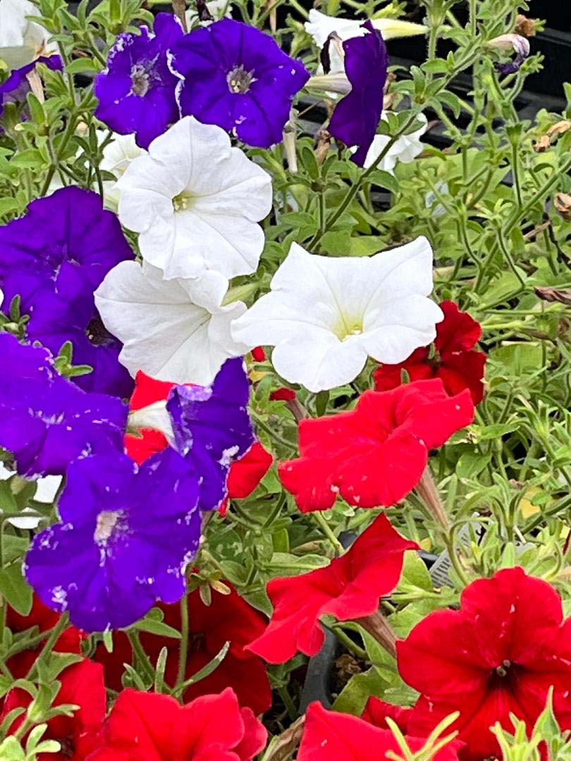 My July 4th celebrations usually include a patriotic red, white, and blue flower combo, but because blue is hard to pull off in our torrid summers, I usually end up with red, white, and some sorta pale purplish color, and shove a flag in for actual blue.