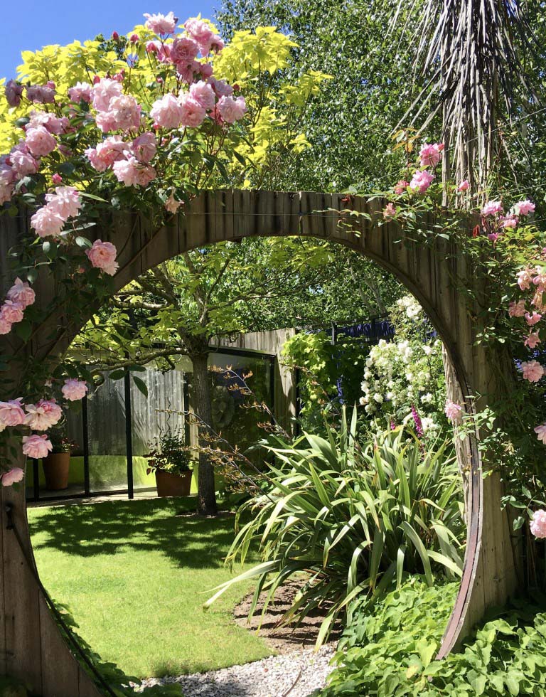 From the unique entry arbor and custom-made gates to the back fence, the entire property is space set apart from the outside workaday world. Neither I nor any visitor can get in without crossing a deliberate threshold; inside is a special feeling of being myself. As it should.