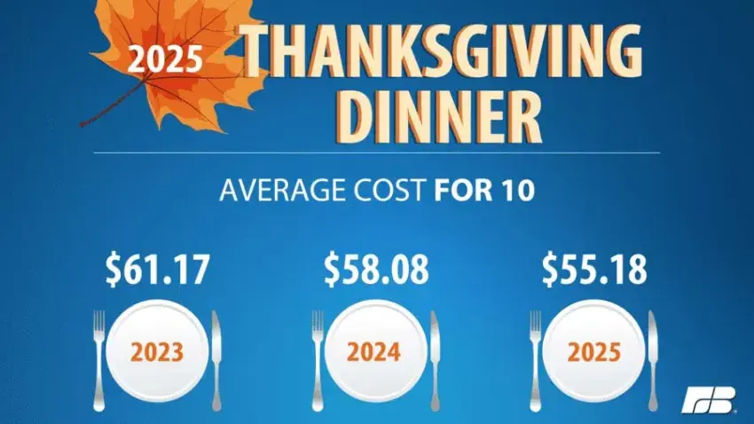 According to American Farm Bureau Federation’s 40th annual Thanksgiving dinner survey, a Thanksgiving dinner for your family will cost less than last year, marking the third straight year of price declines.