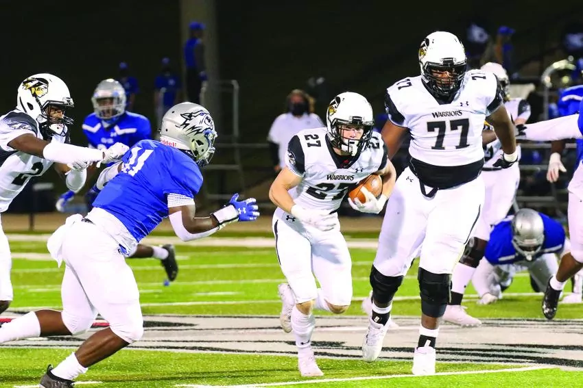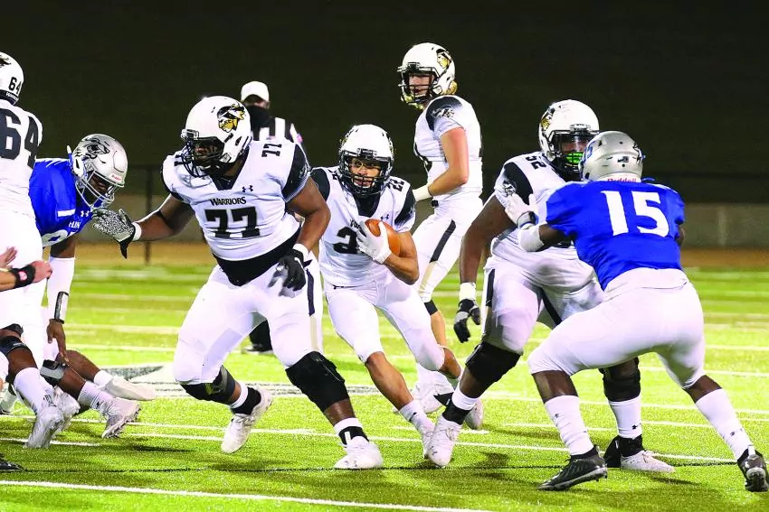 In the first overtime, sophomore linebacker Trenton Ladner (Hancock) came up with the play of the night for the Warriors, blocking a 28-yard Co-Lin field goal attempt to set up the winning field goal.