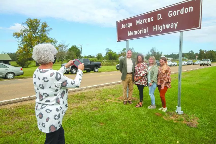 Once the memorial concluded, the “Judge Marcus J. Gordon Memorial Highway” sign was unveiled. Sen. Tyler McCaughn and Rep. Randy Rushing are responsible for getting a part of Hwy. 15 named in memorial of Judge Gordon.