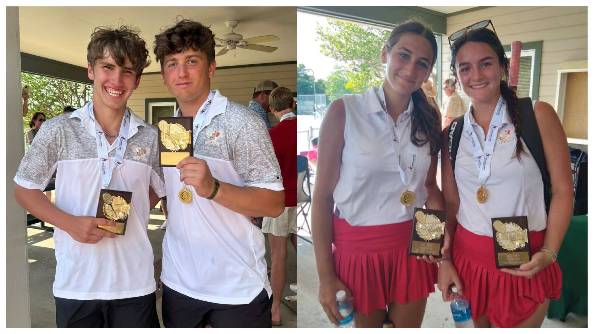 The teams of Taylor Burt and Eli Herrington won the Class 3A No. 1 boys doubles title while the team of Piper Collins and Jamie Stamper won at No. 2 girls doubles.