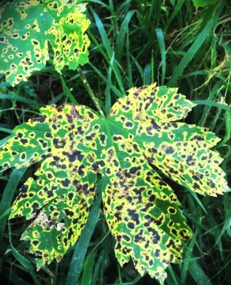 At worst, highly susceptible plants can be completely defoliated and die; at best there is just a little discoloration which most folks rarely even notice and can be ignored by all but the fussiest - I mean fastidious - gardeners. In many cases where there is little control and it doesn’t actually kill plants, I simply accept them as natural phases of some plants; call it a “spotted-leaf maple” and let it go.