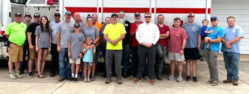 Pictured, l-r , Alan Ware, Jacob McKinney, Chris Pearson, Alex Withers, Earl Davis, Brent Cockerham, Chief Dale Yates, Chastity Cockerham, Joye James, Patricia Townsend, Richard Townsend, Michael James, Brant Lowery, Roger Phillips, Clint Walker, Thomas Whinery, Jace Author, and Robert Holder.