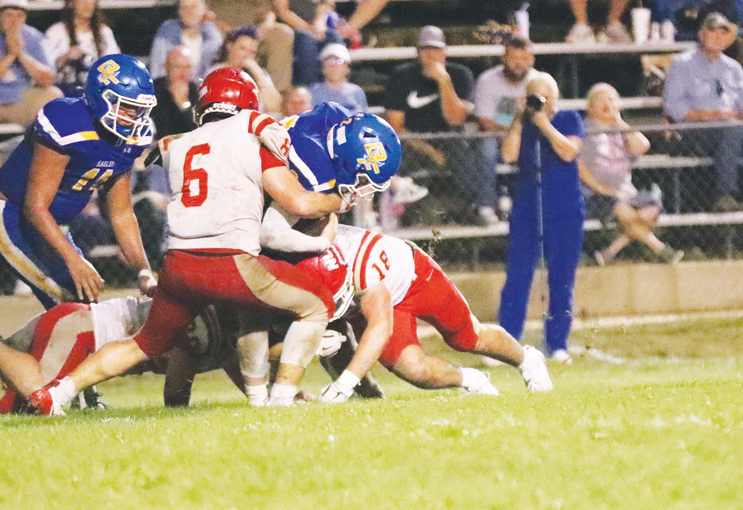 The Eagles answered with a scoring drive of their own as they went 49 yards in seven plays, scoring on a 30-yard pass play midway through the fourth quarter. The try for two was good and Ben’s Ford took a 22-21 lead.