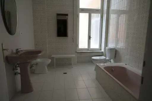 Gone are the heavy curtains that blocked sunlight. Long silent walls will from now on echo with poetry readings, experimental theater, film screenings and contemporary art exhibits. The rooms offer workshops and shared areas for 23 artists from 15 countries.