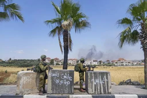 The Israeli military said it sent forces into the town “to extinguish the fires, prevent clashes and to collect evidence.”
