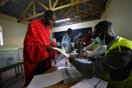 NAIROBI, Kenya (AP) — Fewer Kenyans voted Tuesday in an unusual presidential election where a longtime opposition leader who is backed by the outgoing president faces the brash deputy president who styles himself as the outsider. Turnout was just 56% an hour before polls closed as some voters cited little hope of real change.