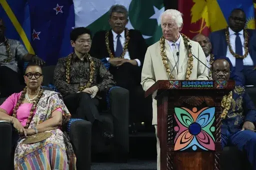 The British monarch told leaders in Apia that he understood “the most painful aspects of our past continue to resonate." But Charles stopped short of mentioning financial reparations that some leaders at the event have urged, and instead exhorted them to find the “right language” and an understanding of history “to guide us towards making the right choices in future where inequality exists."