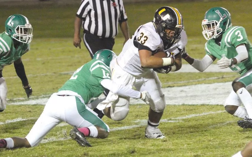 Lake quarterback Brady McGee scored two touchdowns and had 220 yards of total offense as he led the Hornets to a 28-22 win over the rival Yellowjackets.