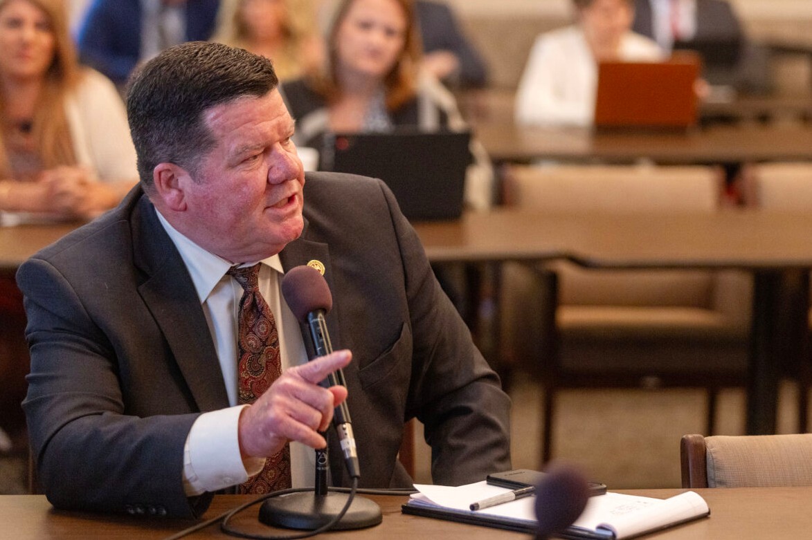 Sen. Hob Bryan, center, chairman of the Public Health and Welfare Senate Committee, speaks during a committee meeting at the State Capitol in Jackson, Miss., Wednesday, Feb. 7, 2024. Credit: Eric J. Shelton/Mississippi Today