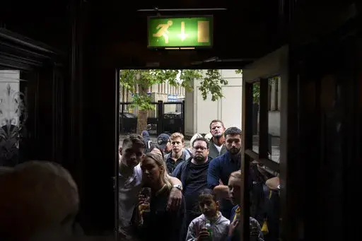 A few broke into a rendition of Britain’s national anthem, which is now titled “God Save the King.”