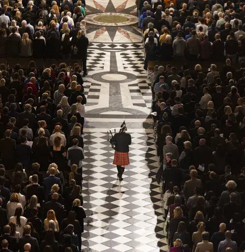 His speech was broadcast on television and streamed at St. Paul’s Cathedral, where some 2,000 people were attending a service of remembrance for the queen. Mourners at the service included Prime Minister Liz Truss and members of her government.