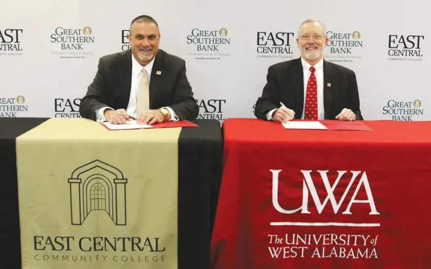 East Central Community College and the University of West Alabama today signed a Memorandum of Understanding that provides enhanced benefits for qualified ECCC students who transfer to the four-year institution in Livingston, Ala.