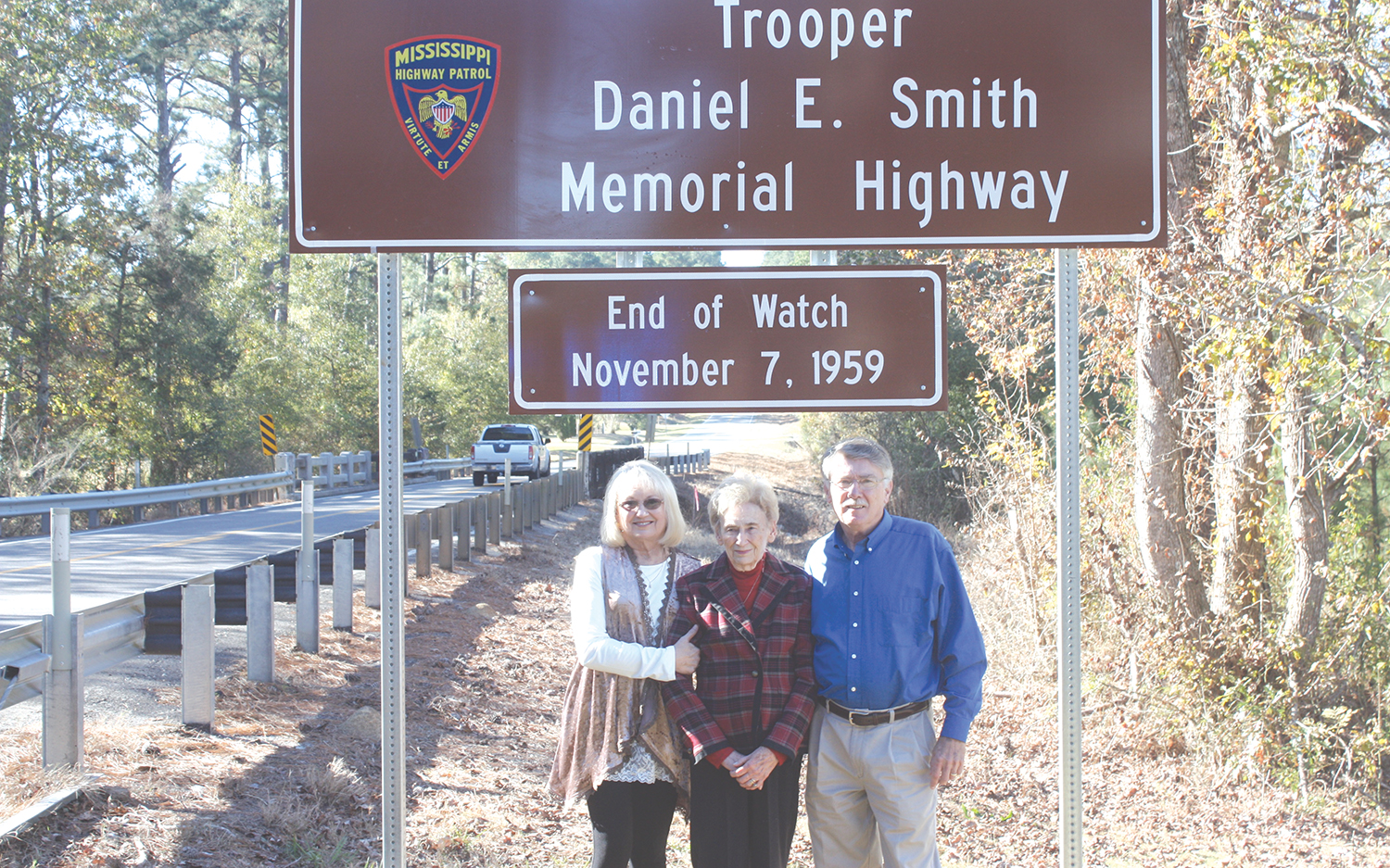 The Mississippi Department of Transportation and the Mississippi Highway Patrol unveiled two signs on Tuesday, Nov. 28, renaming the stretch of the highway as the Trooper Daniel E. Smith Memorial Highway.