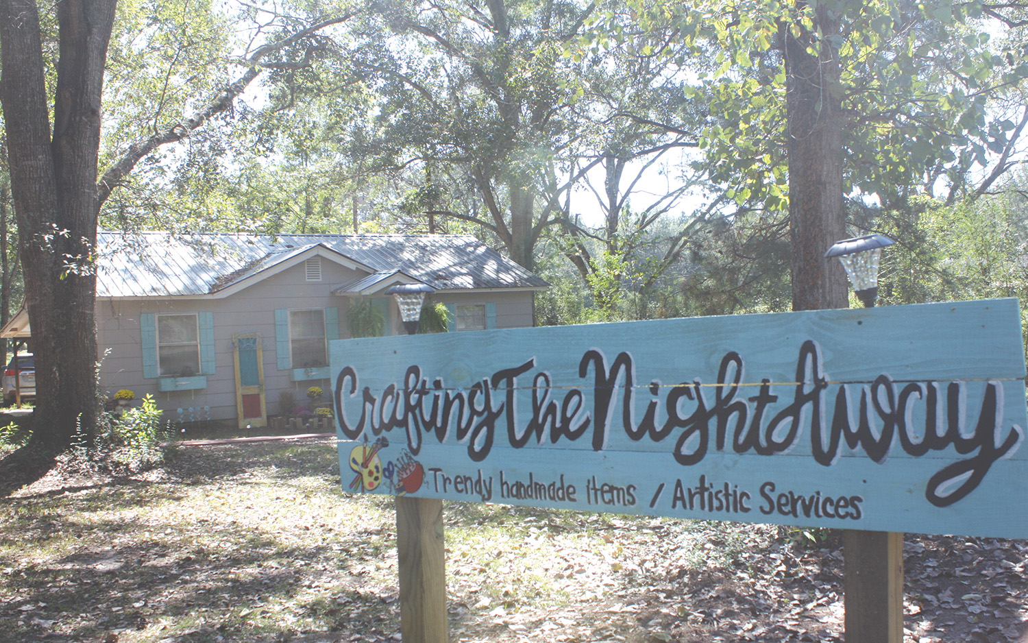Her late night crafting would later be what inspired the shop’s name. After retiring from East Central Community College, where she worked in the business and admissions offices, Stephens decided to start doing her painting and crafts full-time. She would sell her paintings and crafts at various flea markets around the state, including in Canton, and built up a following on Facebook. The shop, which is a small home down the road from her and husband’s home, came on the market when the previous owner moved.