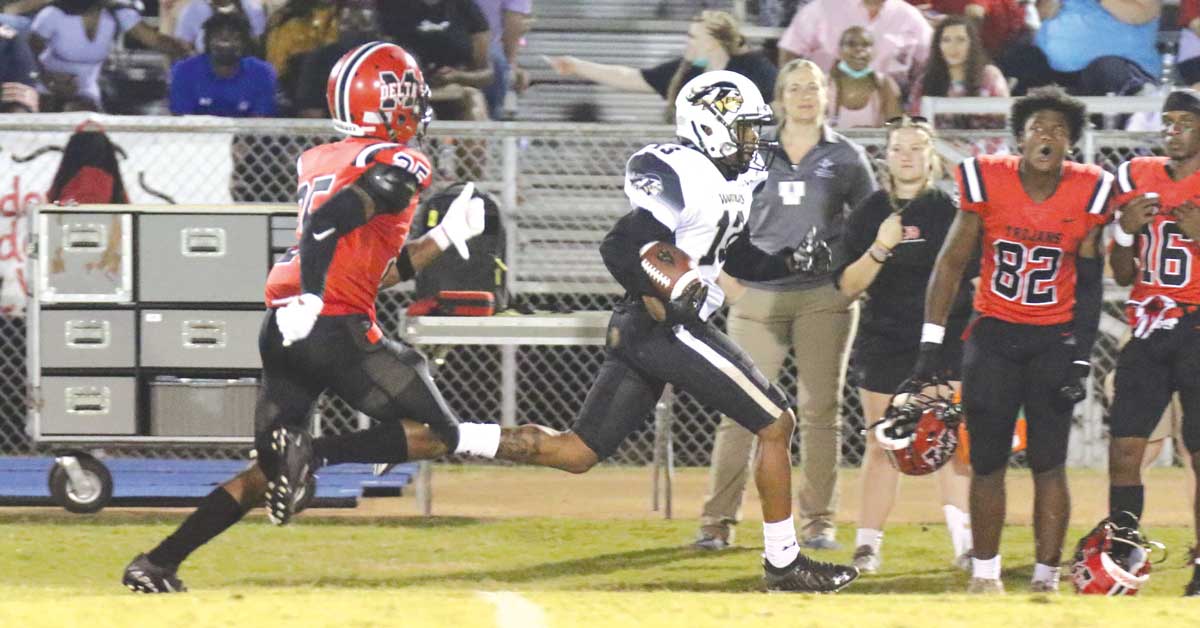 Williams led the Warriors defense with nine tackles, five solo and four assists, while Equandric Ross (Prentiss) wrapped up nine, three solo and six assists, and two sacks. Ke’Sean Johnson (Quitman) also posted two sacks and an additional tackle for loss and forced one fumble.