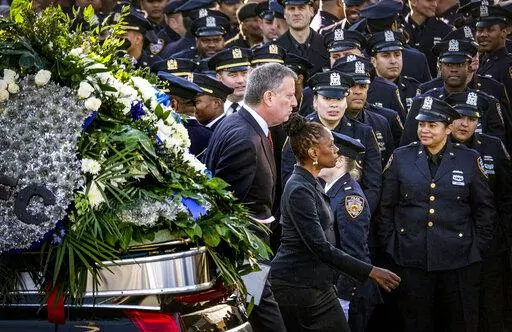 He spoke critically of the officers but largely held off any department punishments until a lengthy federal civil rights investigation concluded. Later that year, when a disturbed gunman angry about police killings of unnamed Black men fatally shot two NYPD officers, the head of the city’s largest police union said the mayor had “blood on his hands,” and officers turned their backs on the mayor as he spoke at police funerals.