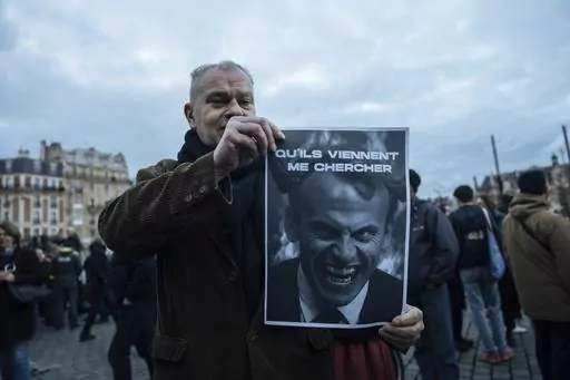 PARIS (AP) — A parody photo appearing on protest signs and online in France shows President Emmanuel Macron sitting on piles of garbage. It's both a reference to the trash going uncollected with Paris sanitation workers on strike — and to what many French people think about their leader.