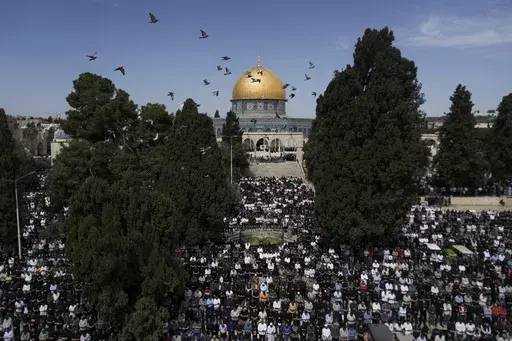 In Jerusalem, some 80,000 Muslim worshippers prayed Friday at the Al-Aqsa mosque compound for the second week of Ramadan, flanked by the iconic Dome of the Rock.