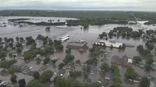 Gov. Kim Reynolds declared a disaster for 21 counties in northern Iowa, including Sioux County. In drone video posted by the local sheriff, no streets were visible, just roofs and treetops poking above the water.