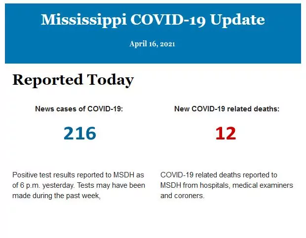 Listed below is the daily COVID-19 update for the state of Mississippi.