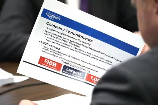 Republican Gov. Tate Reeves had announced Wednesday that a tech company would build the centers at two sites north of the capital city of Jackson, but he withheld the company's name until after legislators approved a $44 million incentive package. Most of the state money, $32 million, will go toward job training programs.