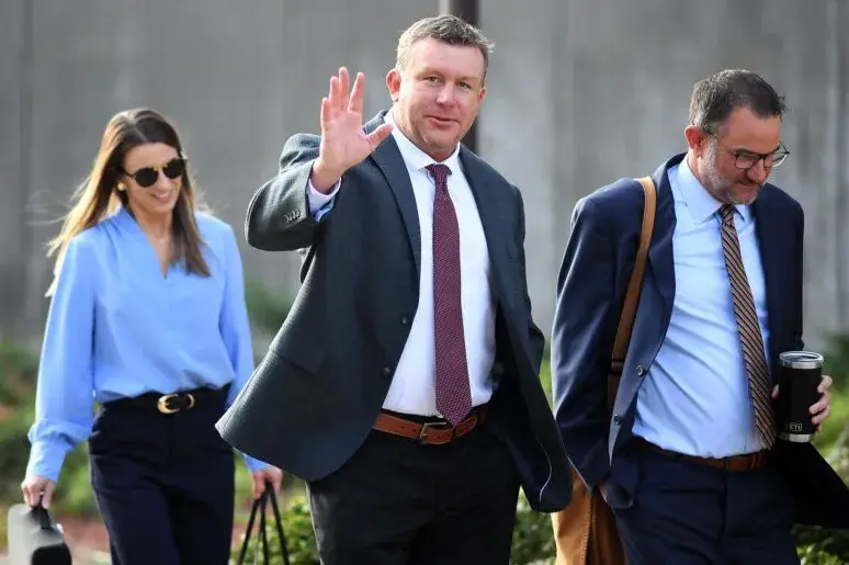 Ted "Teddy" DiBiase Jr., center, walks with his wife Kristen Tynes and his attorney Scott Gilbert to the Thad Cochran United States Courthouse on Thursday, March 19, 2026, in Jackson. Credit: Vickie D. King/Mississippi Today