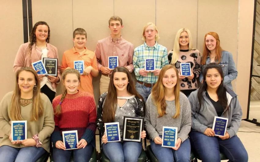 The Cross Country Team of Newton County Middle and High School held its annual Awards Banquet, honorees included front row from left: Josie Tullos, Most Improved; Ava Way, Most Outstanding; Audrie Gentry, Senior Award and Legacy Award; Marilyn Tullos, Cougar Award; and Leona Billy, Senior Award; back row from left: Olivia Clark, Seni