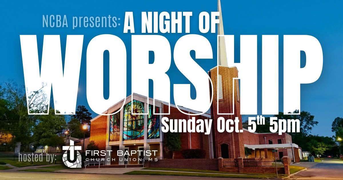 The Newton County Baptist Association invites the community to a Night of Worship on Sunday, October 5, at 5:00 PM, at First Baptist Church Union, 400 Main Street, Union, MS 39365.