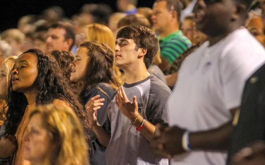 Several hundred high school and college students from Newton and Scott counties gathered at East Central Community College’s Bailey Stadium to celebrate the Fellowship of Christian Athletes’ Fields of Faith.