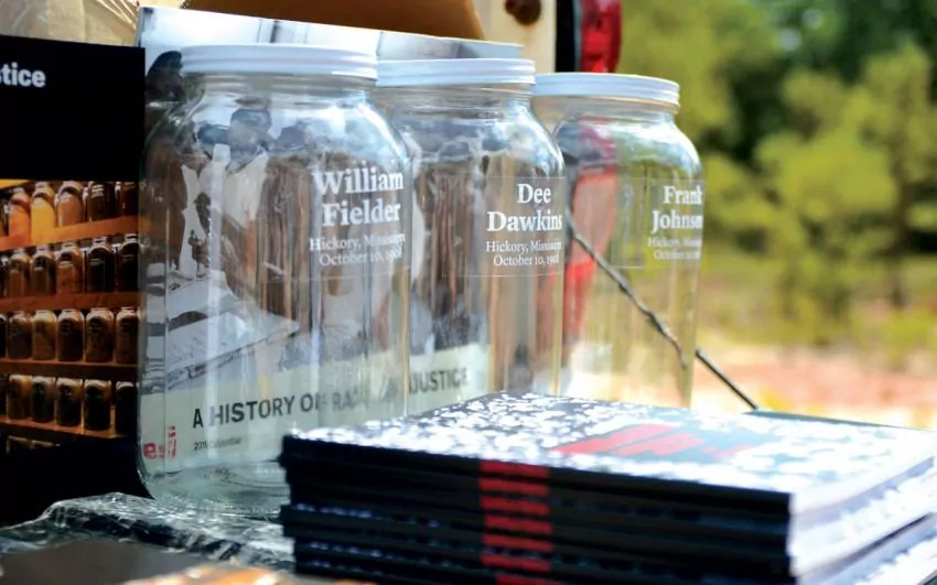 Saturday’s ceremony was held in partnership with the Equal Justice Initiative, a non-profit group based in Alabama. During the ceremony, descendants of the three victims filled large jars with soil from the ground their ancestors were killed, which will join soil from other lynching sites across the south at the EJI museum in Montgomery, AL.